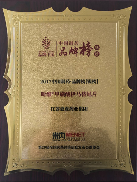 11月9日下午,2017「中国制药•品牌榜锐榜」在第29届全国医药经济信息发布会上盛大发布并举行隆重的颁奖仪式。江苏豪森药业集团的抗肿瘤新药昕维®甲磺酸伊马替尼片等17个品类36个品牌成功上榜。