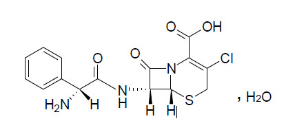 | 【成份】 | 本品主要成份为头孢克洛。 化学名称:(6R,7R)-7-[(R)-2-氨基-2-苯乙酰氨基]-3-氯-8-氧代-5-硫杂-1-氮杂双环 [4.2.0]辛-2-烯-2-甲酸一水合物。 化学结构式: